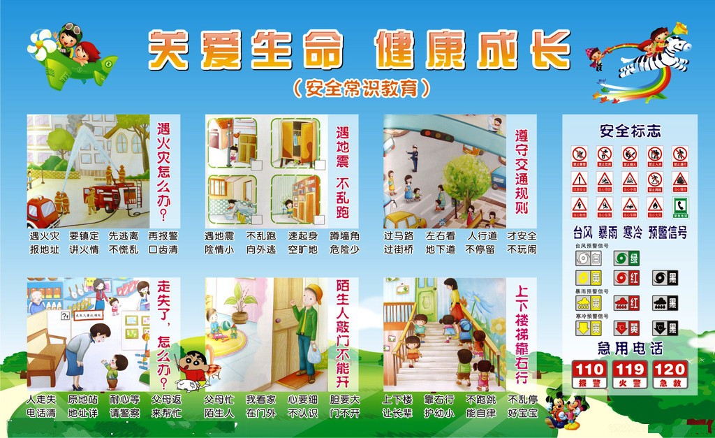 幼儿园安全常识教育展板:关爱生命 健康成长》》